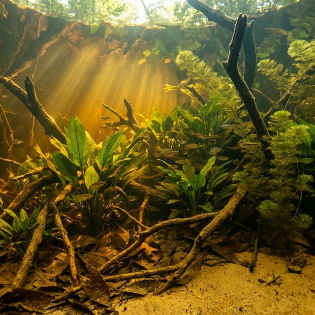 Deep within the emerald heart of South America, the Amazon Basin pulses with life, governed by the rhythmic rise and fall of seasonal floods. Here, the water is a living tapestry, range from crystal-clear mountain streams to the profound, tea-colored depths of tannin-stained forests. Submerged beneath the canopy, the world is one of soft, filtered light and intricate shadows, where gnarled roots and fallen branches create a complex labyrinth for aquatic life.