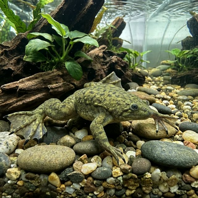 In addition to their aesthetic appeal, African Clawed Frogs play a crucial role in the aquarium ecosystem. They are known for their voracious appetite and can act as scavengers, helping to keep tanks clean by consuming leftover food and detritus. These frogs are also part of several biological studies, making them so significant that they are utilized in laboratories worldwide to study developmental biology, genetics, and pharmacology. Their hardiness and adaptability to various aquatic environments make them an ideal choice for hobbyists looking to introduce something unique to their tanks.