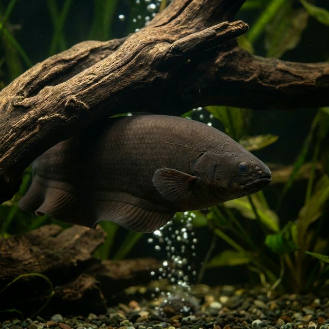 The African Knifefish exhibits intriguing behavior that can vary greatly depending on its environment and tank mates. Though generally peaceful, they may display territorial tendencies, particularly when confined to smaller spaces or when introduced to new tank mates. They prefer to inhabit the lower to mid-water regions of the aquarium, often staying close to the substrate or near vegetation, although they are known to explore their environment throughout all levels of the tank.