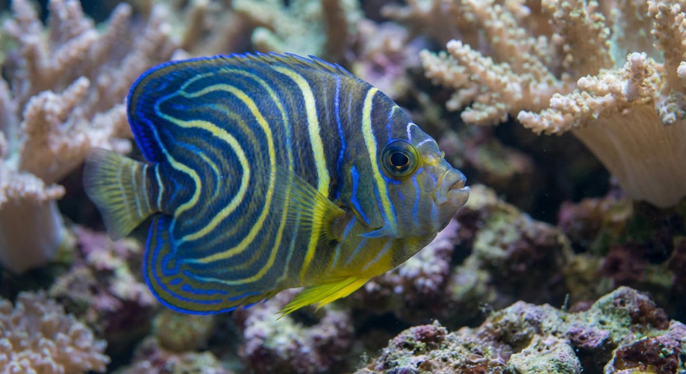 The Annularis Angelfish (Pomacanthus annularis) is a stunning saltwater fish known for its unique appearance and behavior.