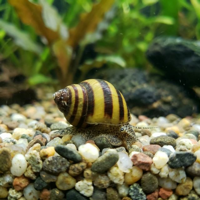 The Assassin Snail, scientifically known as Clea helena, is a freshwater gastropod that has won over the hearts of aquarium enthusiasts due to its intriguing behavior and practical utility. These snails are characterized by their striking appearance, often displaying a beautiful pattern of yellow and brown spirals, which can add unique visual interest to aquariums. Unlike many other aquatic snails, the Assassin Snail is known for its predatory nature, primarily feeding on pest snails such as pestiferous planarians and other soft-bodied invertebrates. This makes it not only a visually appealing addition to the tank but also a valuable tool for maintaining a balanced ecosystem in your aquarium.