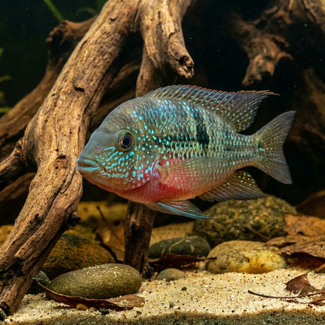 The Aureus Cichlid, scientifically known as Thorichthys aureus, is a captivating freshwater fish native to Central America. Known for its vibrant coloration and distinct body shape, this cichlid showcases a harmonious blend of yellows, blues, and greens, which glimmer under aquarium lighting. More than just a visual delight, the Aureus Cichlid is also significant in the aquarium hobby due to its fascinating behaviors and adaptability to various tank conditions. Its popularity among aquarists stems from its striking appearance combined with relatively manageable care requirements, making it a sought-after species for both beginner and seasoned fish keepers alike.