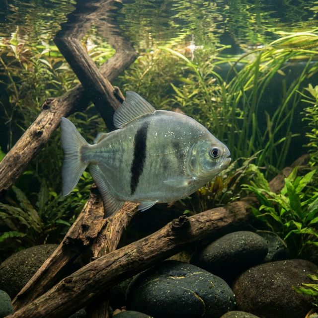 In its native environment, the Black-barred Myleus benefits from a rich biodiversity, often cohabiting with various species of tetras, catfish, and other freshwater fish. The specific environmental conditions of its habitat play a crucial role in its health and behavior, making it essential for aquarists to replicate similar conditions in captivity to provide the best care possible.