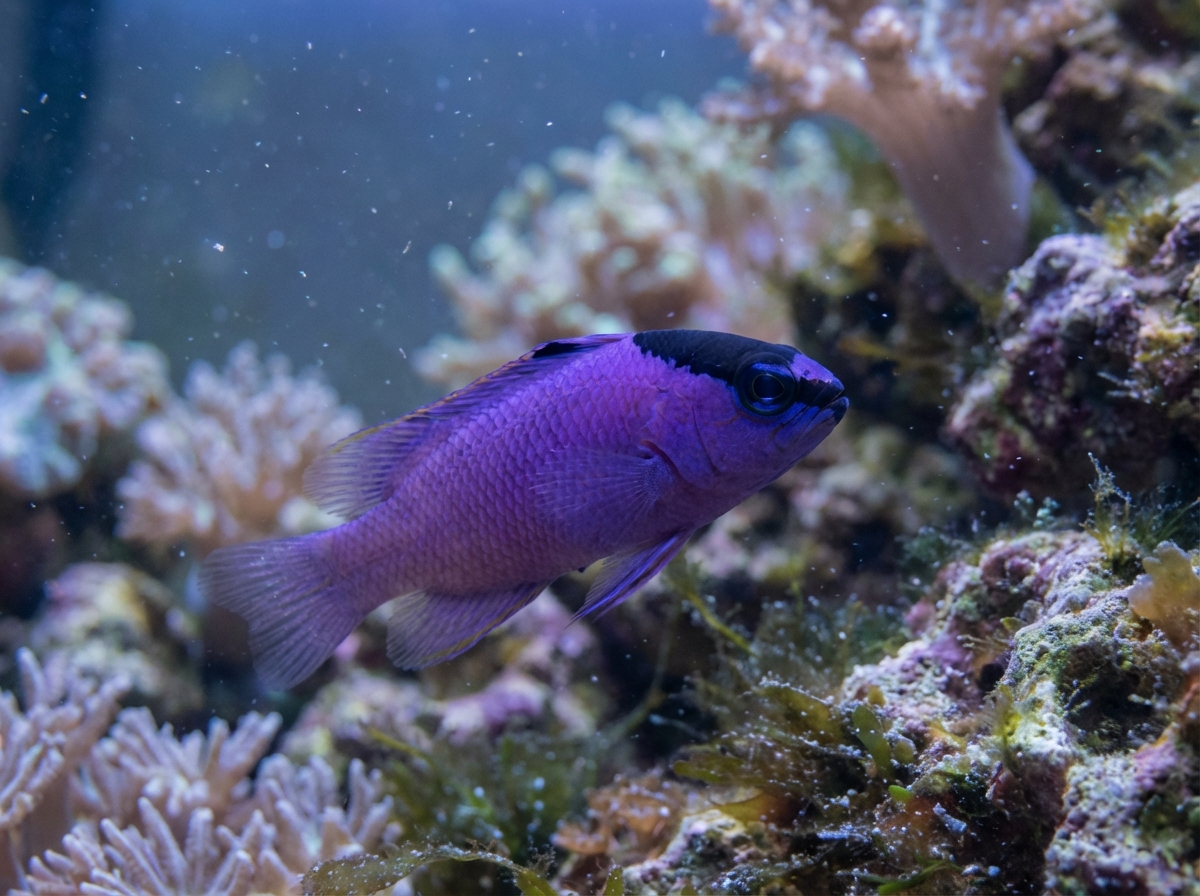 The Blackcap Gramma (Gramma melacara) is a captivating marine fish native to the warm, shallow waters of the Caribbean Sea. Recognized for its striking appearance, the Blackcap Gramma showcases a vibrant coloration with a saturated purple body and a distinctive black spot located on the upper part of its head that gives the species its common name. This small yet resilient fish typically grows to about 2.5 inches in length and boasts a finely detailed pattern of bright, iridescent hues that allows it to stand out in both home aquariums and natural environments. As a popular choice among aquarium enthusiasts, the Blackcap Gramma not only adds a splash of color but also contributes to the overall biodiversity that marine aquarists seek.