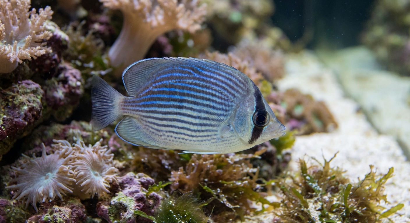 Caring for a Bluestriped Butterflyfish requires attention to specific water parameters to create a suitable environment. The ideal temperature for this species ranges from 74°F to 80°F (23°C to 27°C), with a pH level between 8.1 and 8.4. The hardness should be maintained between 8 to 12 dGH, emulating the calcium-rich waters of their native reefs. For tank setup, a minimum aquarium size of 50 gallons is recommended to provide ample swimming space and territories. The substrate should be a mix of fine sand and gravels, with plenty of hiding spots created using live rocks and corals.