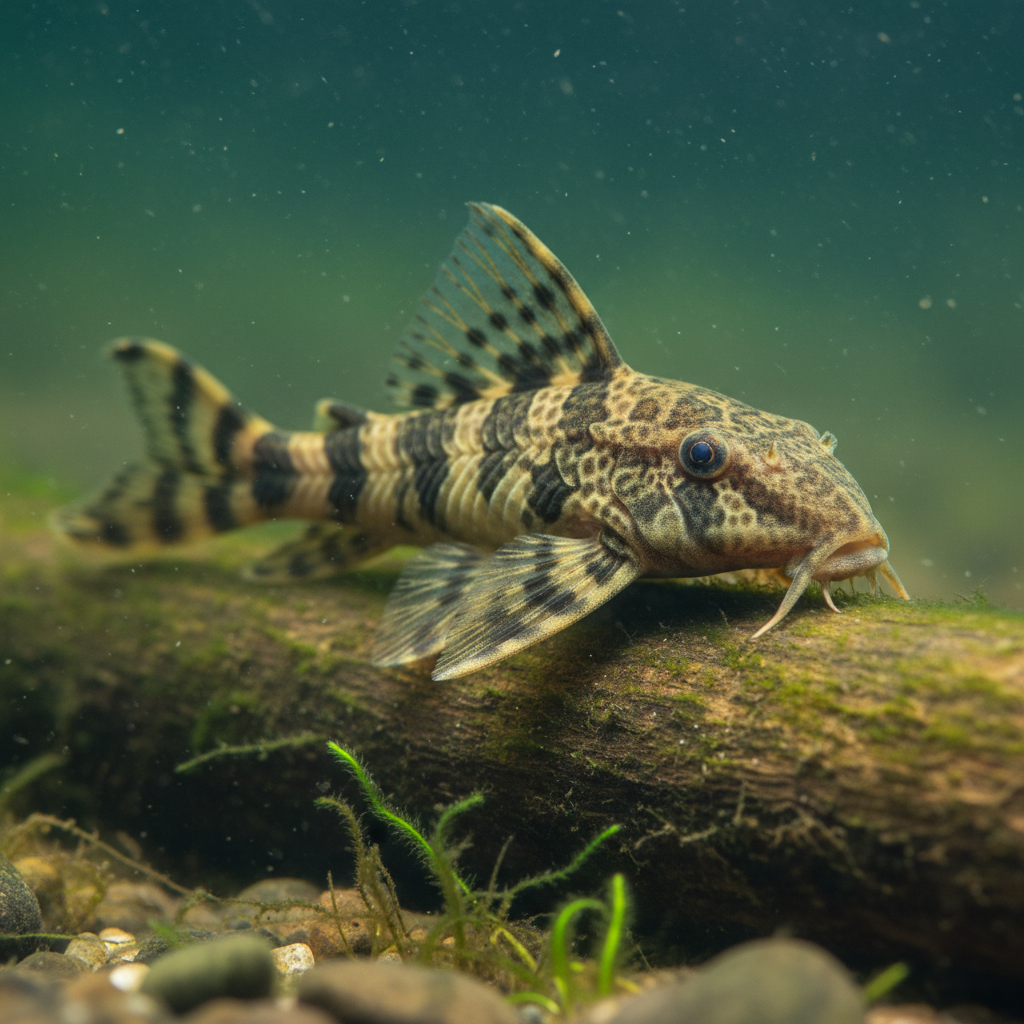 The Bulldog Plec hails from the Andean river systems in regions including Peru and Ecuador. These rivers are characterized by a mixture of clear and blackwater habitats, streaming through lush rainforests that provide a wealth of organic material and varied substrate types. The Bulldog Plec prefers slower-moving waters where it can find refuge among rocks and submerged vegetation. The natural environment typically has a high level of dissolved organic matter and offers plenty of hiding spots, such as caves and ledges, which are crucial for its well-being in captivity.