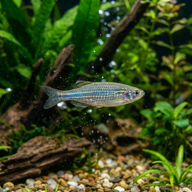 The Burma Danio is predominantly found in the river systems of Myanmar, particularly in areas with slow-moving waters and lush vegetation. Its natural habitat encompasses a mix of freshwater environments, including shallow streams, ponds, and flooded rice fields. The water in these regions tends to be a mixture of clear and slightly stained, reflecting the nutrient-rich sediment and organic matter typical of blackwater zones. Water temperature usually hovers around 24 to 28°C (75 to 82°F), with a pH range of 6.5 to 7.5, providing a glimpse into the ideal conditions for this species.