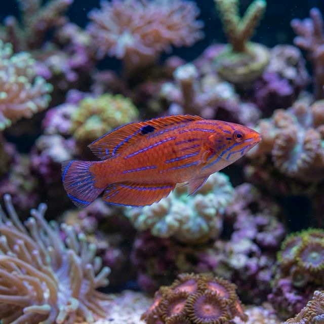 To ensure optimal nutrition, it's advised to feed the Carpenter's Flasher Wrasse multiple small meals throughout the day rather than one large feeding. This not only mimics their natural foraging behavior but also prevents the risk of overfeeding, which can lead to health issues. Maintaining a balanced and varied diet will enhance their coloration and vitality, making them a stunning addition to your aquarium.