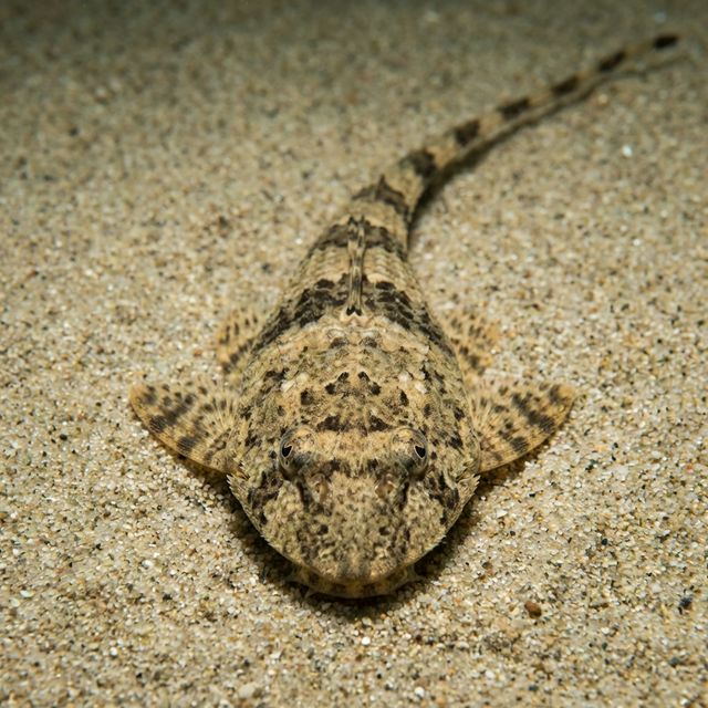 A bizarre, extremely flat catfish that changes color to blend perfectly with the sand.