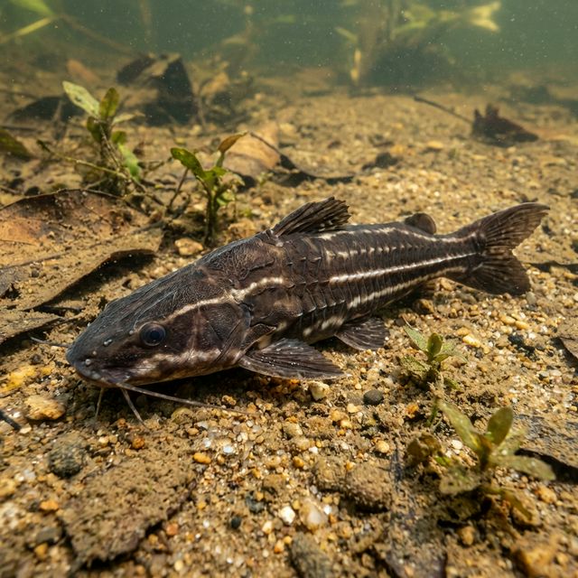 A spiny catfish that produces clicking sounds when handled. Nocturnal and armoured.