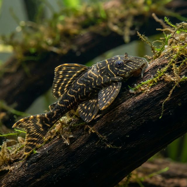 The Clown Pleco is native to the rivers and tributaries of the Amazon Basin, primarily found in countries such as Peru and Brazil. These regions are characterized by slow-moving waters rich in organic material, where the fish are often discovered amongst submerged wood and debris in blackwater environments. The high levels of tannins in these waters create a unique ecological niche, wherein the Clown Pleco has adapted to thrive on the soft materials in its habitat, feeding on the biofilm that develops on wood and plant surfaces.
