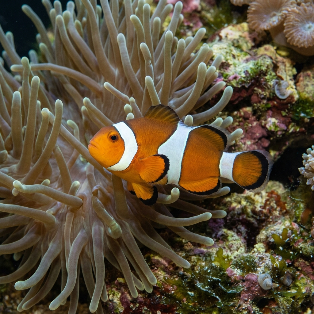 The Common Clownfish is indigenous to the warm, shallow waters of the Pacific Ocean, primarily found around the reefs of the Great Barrier Reef and the Marine Protected Areas of Southeast Asia. This species tends to inhabit clear waters, often residing among the tentacles of sea anemones. These anemones serve as both shelter and a hunting ground for the Common Clownfish, exhibiting a unique mutualistic relationship that is vital for its survival. In the wild, the Common Clownfish darts in and out of the anemone’s protective tentacles, which provide refuge from larger predators while granting the anemone nutrients from leftover food and organic waste.