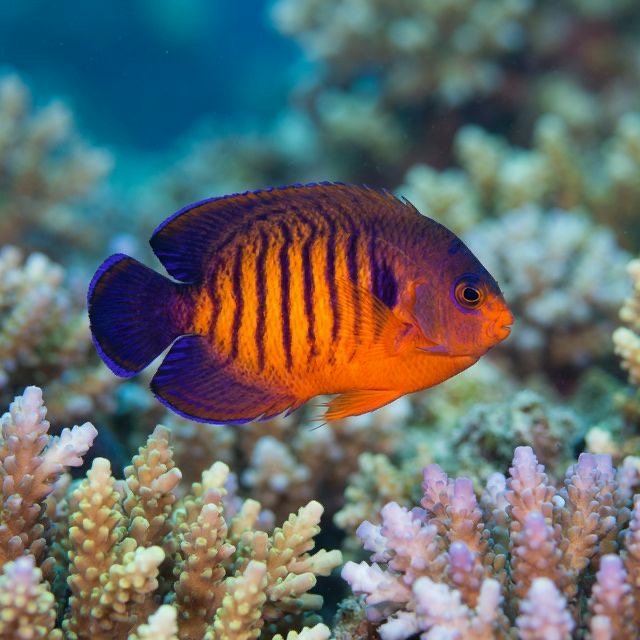The Coral Beauty (Centropyge bispinosa) is a stunning saltwater fish known for its unique appearance and behavior.