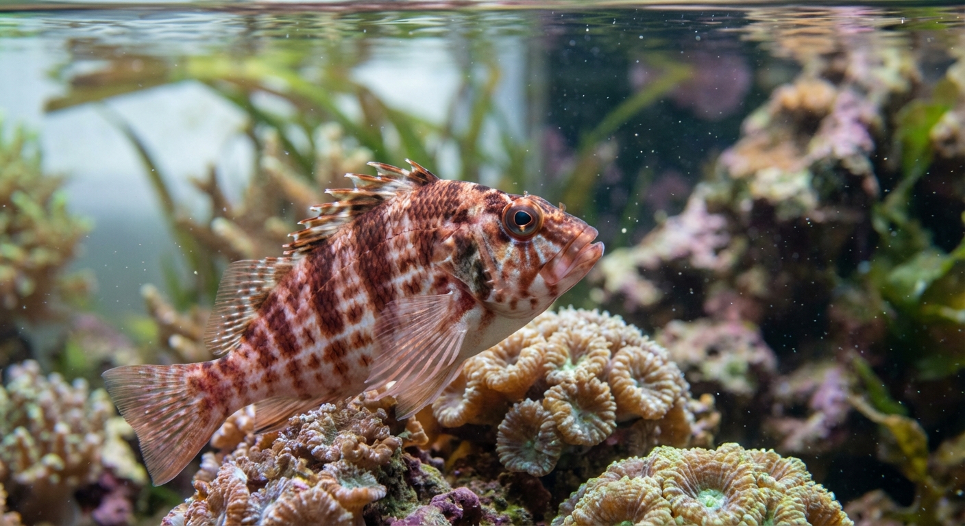 For successful care of the Coral Hawkfish, specific water parameters and tank conditions are critical. Ideal parameters include a pH range of 8.1 to 8.4, a temperature of 24 to 28°C (75 to 82°F), and a water hardness of 8 to 12 dKH. Given its natural environment, maintaining stable water quality is essential to prevent stress and disease. Regular water changes and high-quality filtration can help achieve these conditions.
