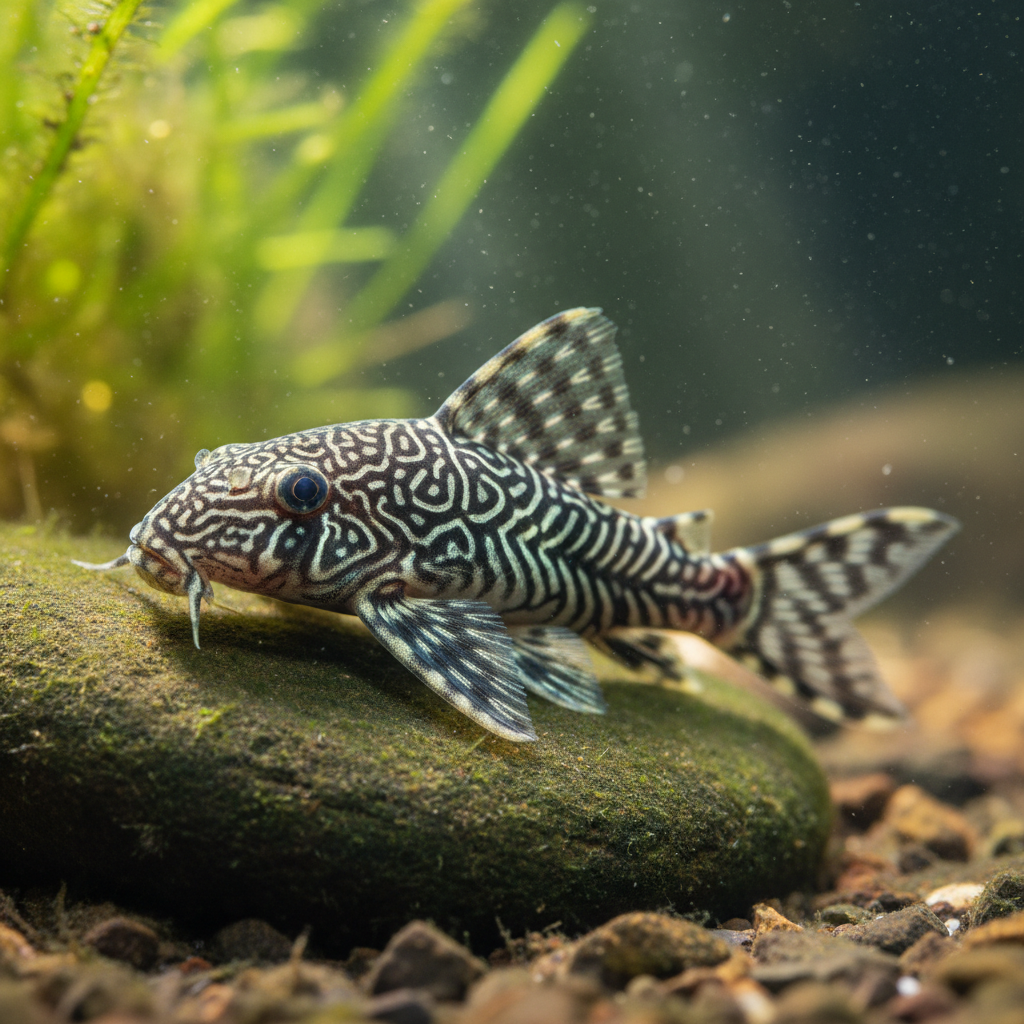 Caring for a Cracked Zebra Plec L236 involves ensuring optimal water parameters and a suitable tank setup. Aquarists should maintain a pH level between 6.0 and 7.5, with temperatures between 78°F and 86°F (25°C to 30°C). The water hardness should ideally range between 2 and 15 dGH. It’s crucial to perform regular water changes to keep the parameters stable and the environment pristine.