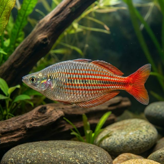 Choosing appropriate tank mates for the Melanotaenia x Glossolepis hybrid is vital for maintaining a harmonious aquarium environment. Compatible species include other peaceful freshwater fish such as tetras (e.g., Neon Tetras, Rummy Nose Tetras), danios (like the Zebra Danio), a variety of rasboras, corydoras catfish, and smaller loaches. These species complement the hybrid’s peaceful nature while sharing similar care requirements, ensuring a stable community tank.