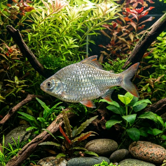 For the tank setup, ensure ample swimming space while incorporating plenty of hiding places using plants, driftwood, and rocks. This will provide the Diamond Barb with a diverse habitat that encourages exploration. Moderate lighting is ideal to simulate their natural conditions, and plants such as Java fern and Cryptocoryne are excellent choices for maintaining a natural aesthetic. Regular water changes and a properly functioning filtration system will help maintain a stable and healthy aquatic environment.