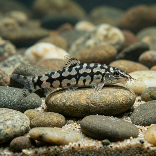 A tiny, active shoaling loach with striking black chain-link patterns. Perfect for smaller community tanks and snail control.