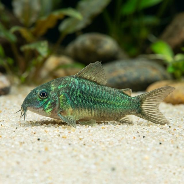 Larger than regular corydoras, with a metallic emerald-green sheen. Very impressive in groups.
