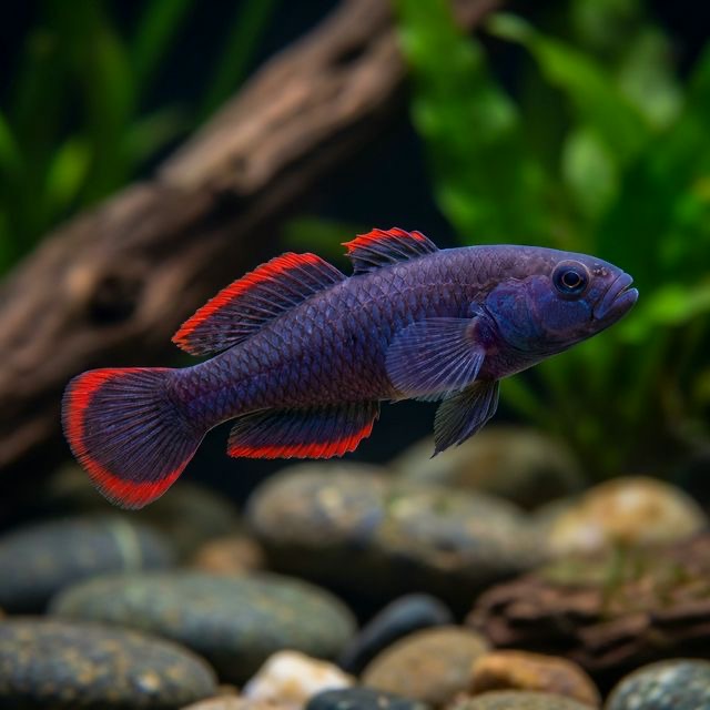 An Australian native fish. Males are brilliantly colored with red fin edges and a purple body.
