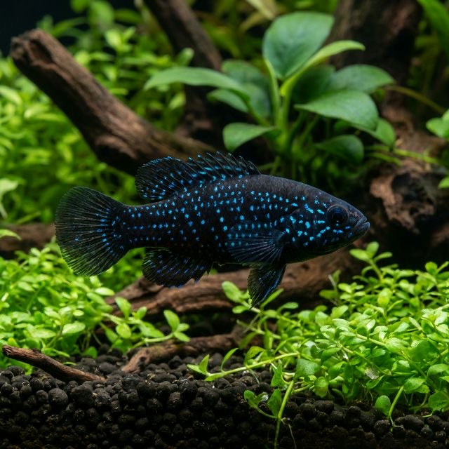 The Everglades Pygmy Sunfish (Elassoma evergladei) is a captivating freshwater fish that belongs to the family Elassomatidae. It is natively found in the freshwater ecosystems of the Everglades in Florida, making it a unique addition to the aquarium hobby. Known for its diminutive size, the Everglades Pygmy Sunfish usually grows to about 1 to 2 inches in length, displaying vibrant colors ranging from deep blues to iridescent greens. Its appearance is particularly striking when contrasted against a lush aquascape, making it a favorite among aquarists who appreciate subtle beauty and personality in smaller species.