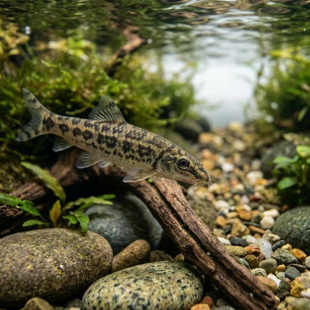 The Forktail Loach originates from the lush river systems and floodplains of Southeast Asia, specifically found in countries like Malaysia and Borneo. These fish inhabit both slow-moving rivers and densely vegetated wetlands, where they thrive in soft, acidic waters characterized by a low pH and minimal turbulence. The natural habitat is primarily blackwater, rich in organic materials and tannins, which impart a dark coloration to the water and lower the overall hardness. This setting not only provides shelter among leaf litter and submerged roots but also contributes to the Forktail Loach's dietary needs, as it feeds on detritus and microorganisms found in the substrate.