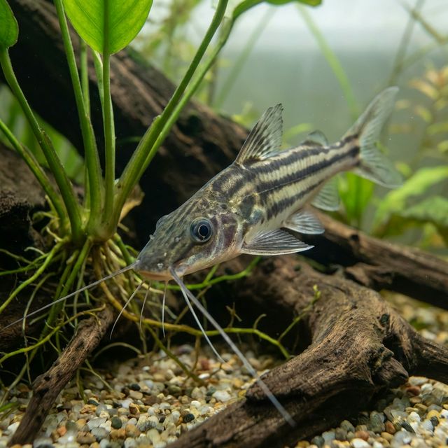 The Four-lined Pimelodus is known for its sociable and dynamic behavior, often displaying interest in its surroundings and interacting with tank mates. This species exhibits a schooling inclination, particularly when housed in groups, which contributes to their overall happiness and reduces stress. It's advisable to maintain them in small shoals of at least three to six individuals to encourage natural social behaviors.