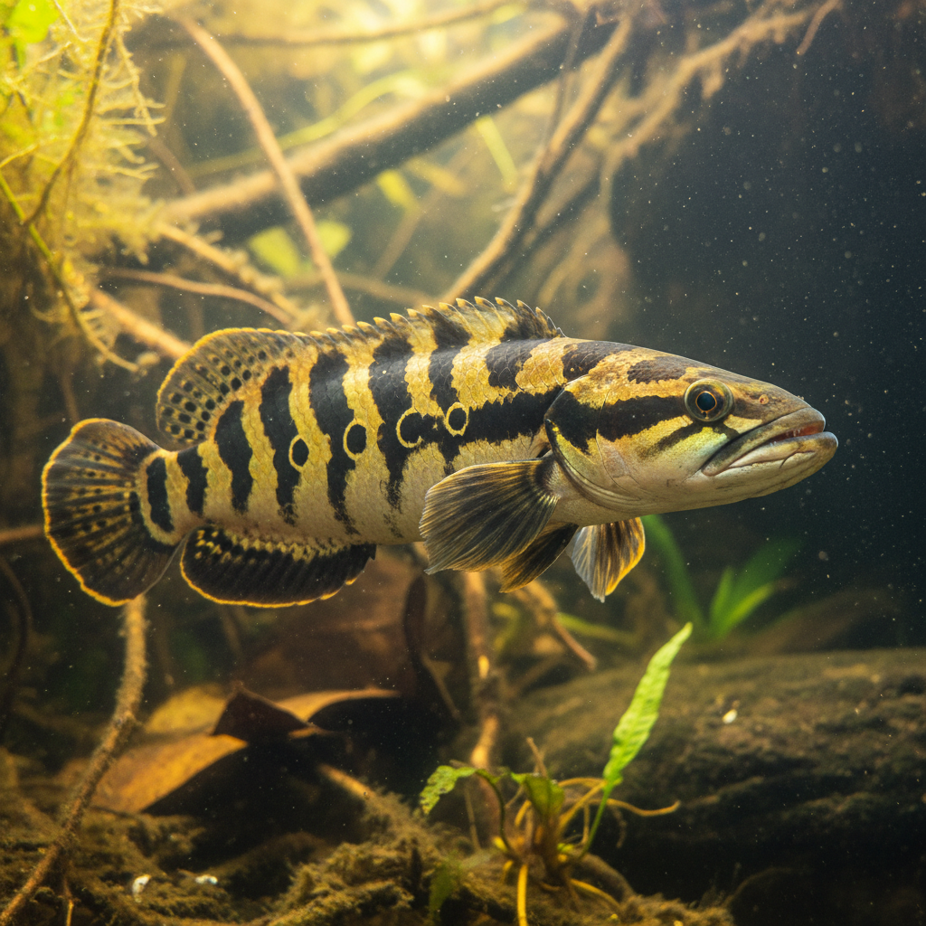 Unlike many other snakeheads, the Golden Cobra Snakehead is a subtropical species found in the forest-fringed wetlands and swamps of the Brahmaputra River in Assam, India. These areas experience significant seasonal changes in temperature. During the monsoon, the waters are warm and high, while in the winter, the water temperature can drop significantly.