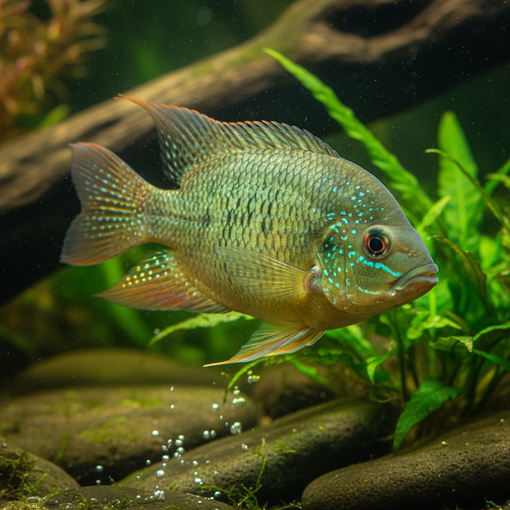 The aquarium should be decorated with large pieces of driftwood and smooth river stones to provide territories and cover. While they are cichlids, they are remarkably gentle with their environment, with one major exception: they are notorious plant eaters. They will consume most soft-leaved live plants, so if you wish to include greenery, stick to tough species like Anubias, Java Fern, or use high-quality silk plants.