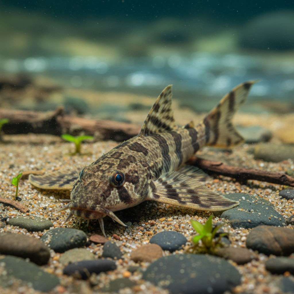 The Llanero Whiptail (Lamontichthys llanero) is a specialized, elegant loricariid from the Orinoco, known for its extremely wide 'wing-like' pectoral fins and its requirement for high-flow, oxygen-saturated water.