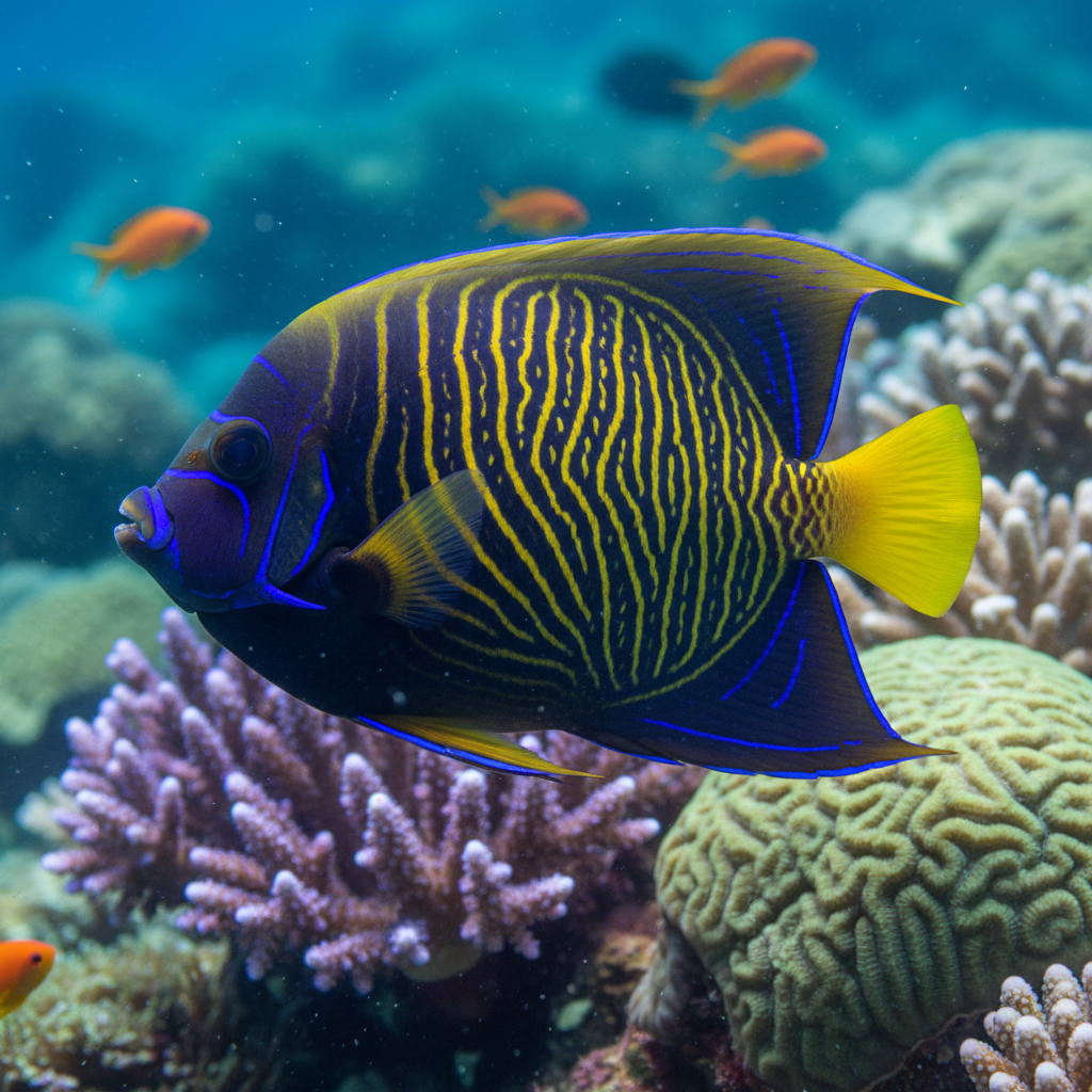The Majestic Angelfish is predominantly found in the warm, shallow waters of the Indo-Pacific region, particularly around coral reefs and rocky substrates. Its geographical range extends from the central Pacific Ocean through the Great Barrier Reef, and along the coasts of various island nations, including Tonga, Fiji, and Samoa. This fish is typically found in areas with lush coral formations, where it can seek shelter and food among the intricate structures of the reef.