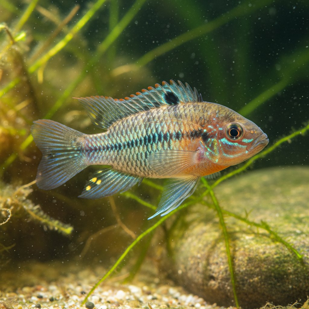 In the wild, the Nudiceps Dwarf Cichlid is often found around the edges of rivers and lakes where they can forage among submerged debris and plants. Due to this specialized environment, the fish has adapted to specific water conditions that replicate these natural habitats. Understanding this context is essential for aquarists who wish to create a successful living environment for their Nudiceps.