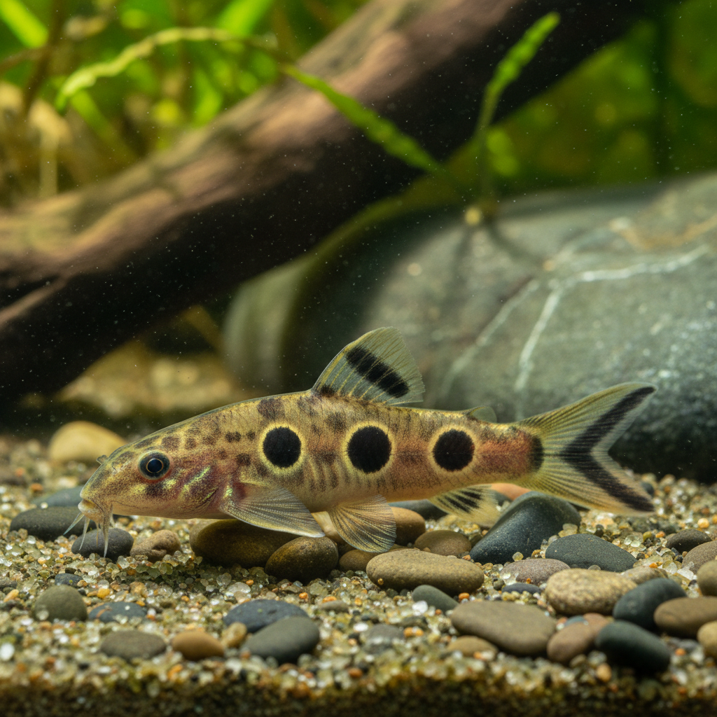 In the aquarium hobby, the Ocellated Loach holds a special significance due to its engaging behavior and adaptability. Unlike many of its loach relatives, the Ocellated Loach is relatively robust and can thrive in a range of conditions, making it suitable for both novice and experienced aquarists. Additionally, its tendency to forage along substrate surfaces, sifting through sand or fine gravel, is not only fascinating to observe but also promotes beneficial behaviors within the aquarium ecosystem by enhancing sediment aeration and waste breakdown.