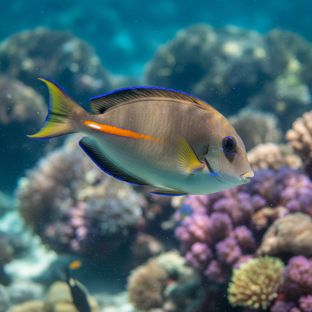 In its natural habitat, the Orange Shoulder Tang thrives in areas with a rich biodiversity, encountering various forms of marine life. The water in these regions is often fairly stable, with moderate currents that facilitate feeding opportunities on algae growth. Such environmental contexts emphasize the importance of replicating similar conditions in captivity to maintain the health and well-being of this species.