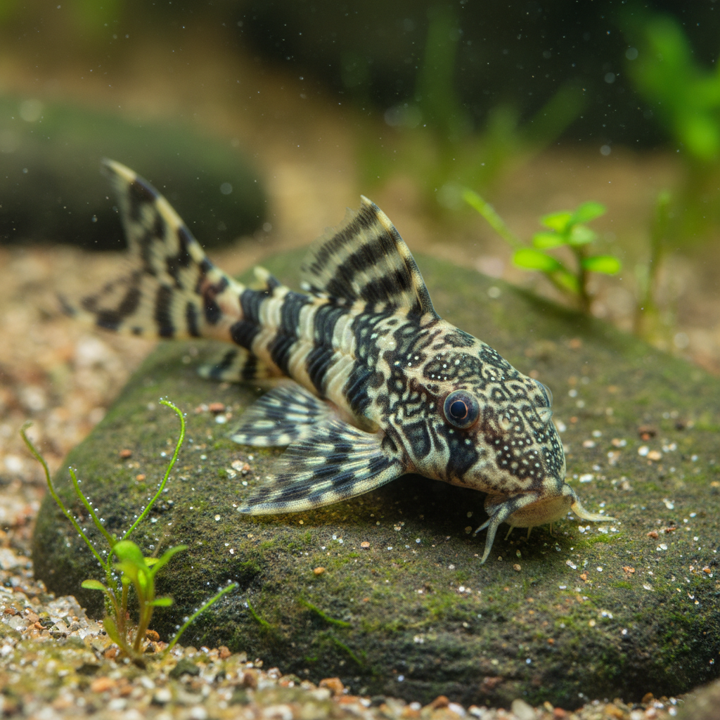 The Orinoco Dwarf Plec is generally a peaceful and reclusive species, often displaying shy behavior, especially during the day. These fish are largely nocturnal, becoming more active during the night when they search for food among rocks and wood in the tank. They are not overly aggressive but can exhibit territorial tendencies, especially males when establishing their space. It is advantageous to provide plenty of hiding spots and visual barriers within the tank to mitigate any aggressive encounters.