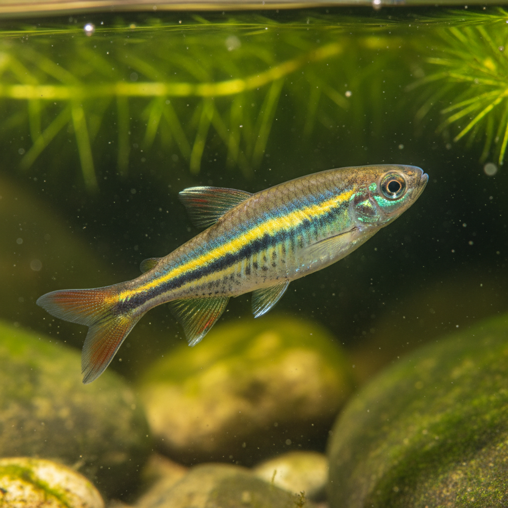 Originating from the rivers and streams of Sri Lanka, Pathiran's Danio holds significant importance in the aquarium hobby not only for its beauty but also for its resilience and adaptability to varying water conditions. This species exemplifies a harmonious blend of form and function, thriving under safe captivity conditions which makes it a favored choice among both novice and experienced fish keepers. Its attraction lies in its active swimming patterns, which contribute to the overall liveliness of an aquarium setting, making Pathiran's Danio a key focal point and conversation starter.