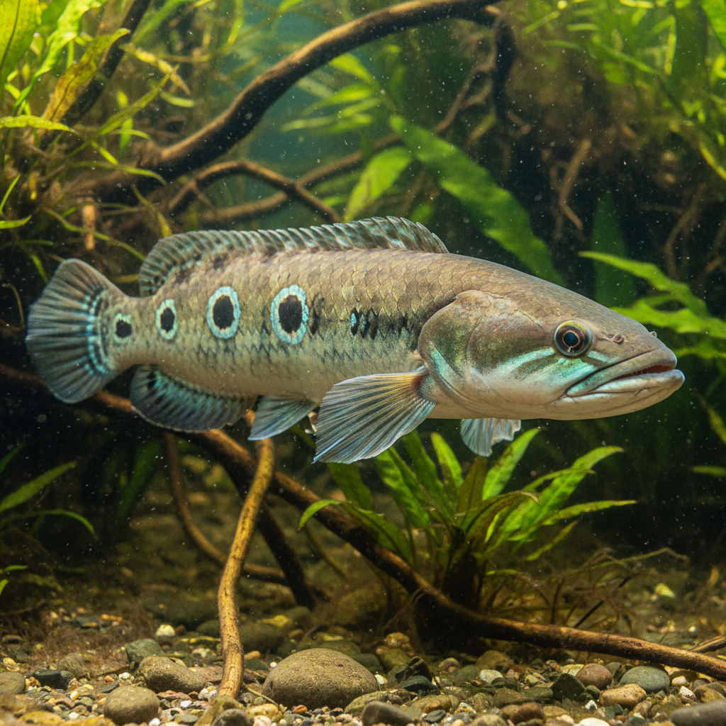 The Peacock Snakehead, scientifically known as Channa pulchra, is a captivating species of freshwater fish renowned for its striking appearance and unique behaviors. With its iridescent hues of blue, green, and bronze, the Peacock Snakehead showcases a stunning color palette that makes it a prized addition to many aquariums. These fish can grow quite large, reaching lengths of up to 30 inches in some cases. Their elongated bodies and distinctively shaped heads add to their visual allure, and their natural swimming style captivates aquarists and casual observers alike. Because of these fascinating traits, the Peacock Snakehead is regarded as a gem in the aquarium trade, appealing to seasoned aquarists looking for something extraordinary.