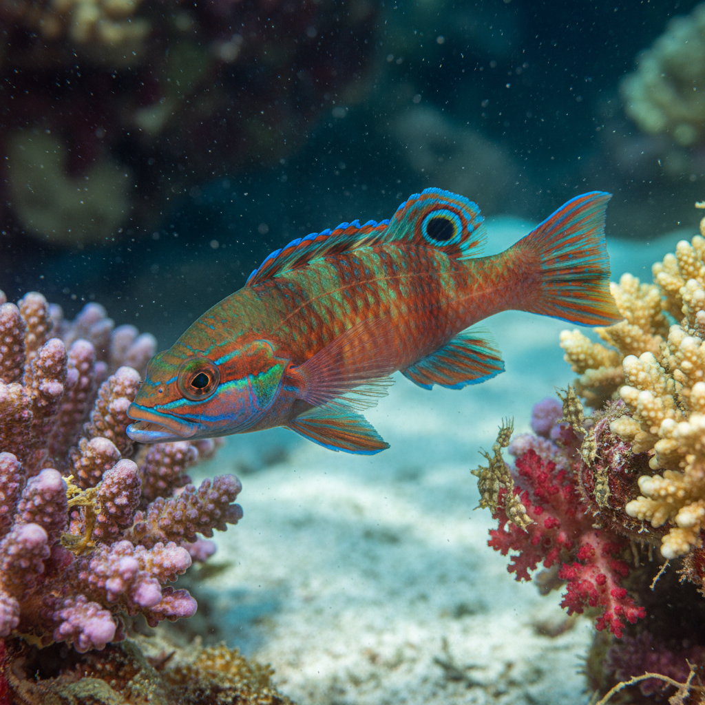 In its natural habitat, the Peacock Wrasse thrives among coral reefs where it plays an essential role in maintaining the balance of the ecosystem. Its preference for well-oxygenated waters with a gentle surge makes it a top candidate for reef aquariums. Understanding its natural environment helps aquarists replicate these conditions, ensuring the health and longevity of this captivating fish.