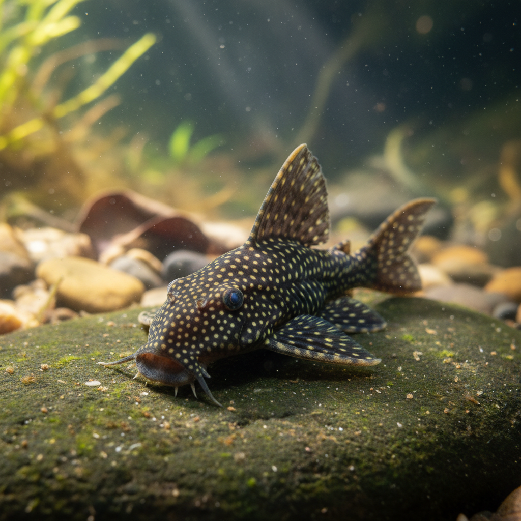 During courtship, males will exhibit territorial behavior, often displaying their fins more prominently to attract females. For successful spawning, providing nesting sites such as caves or PVC pipes will encourage female Peppermint Plecs to lay eggs. Once spawning occurs, ensure the fry are promptly removed from the breeding site to prevent them from being eaten by the parents. Feeding the fry specialized fry food will support their growth and development.