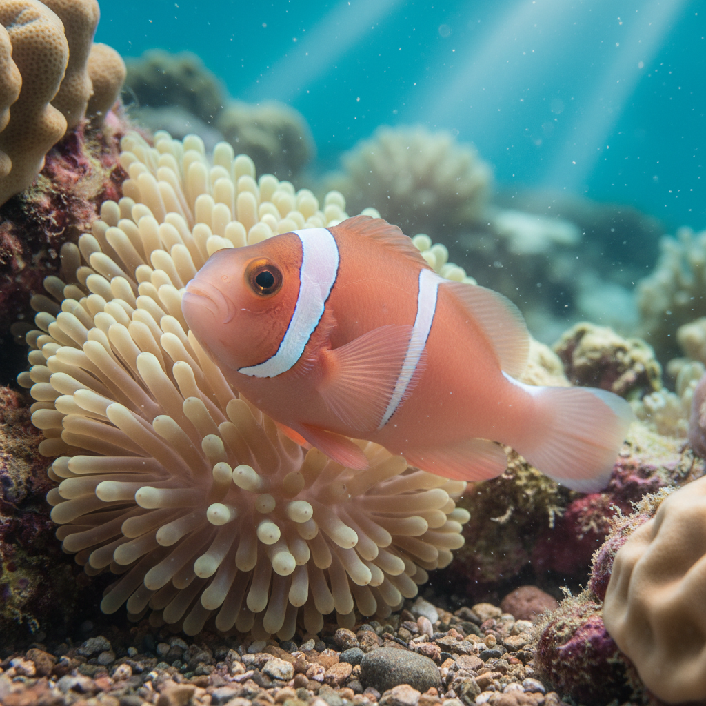 The Pink Skunk Clownfish is primarily found in the warm waters of the Western Pacific Ocean, particularly around the coastal regions of Indonesia, Papua New Guinea, and Australia. Preferring shallow, sheltered reefs, this species typically inhabits areas with abundant sea anemones, which provide a safe haven for the fish and serve as its primary habitat. The Pink Skunk Clownfish is usually found in clear-water environments, where bright sunlight can penetrate the surface, promoting a vibrant growth of the coral and the anemones that are crucial for its survival.
