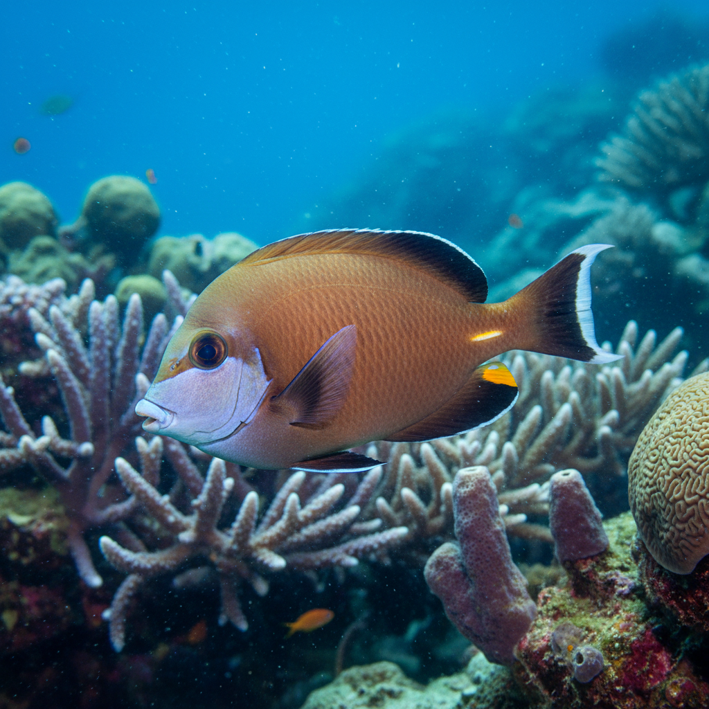 The Powder Brown Tang is indigenous to the warm waters of the Indo-Pacific region, specifically found in areas around Hawaii, the Philippines, and various Pacific Islands. It typically inhabits coral reefs and rocky environments, usually at depths ranging from 3 to 50 meters. These habitats are characterized by clear waters rich in nutrients and a healthy growth of algae, which provides a vital food source for this species. The environmental conditions that dominate this region are essential for the survival of the Powder Brown Tang, as they rely on the delicate balance of coral ecosystems.