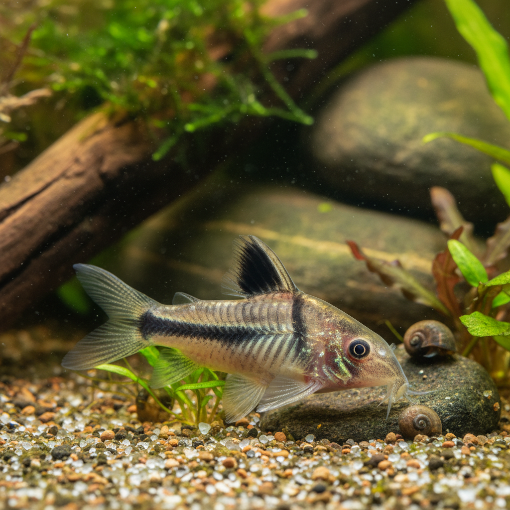 To successfully care for the Pretty Cory, it is essential to maintain optimal water parameters. The ideal pH for these fish ranges between 6.0 and 7.5, with a temperature preference of 22°C to 27°C (72°F to 81°F). Hardness should be kept between 2 to 15 dGH, ensuring that the water quality remains stable. Furthermore, a minimum tank size of 20 gallons is recommended for a small group of Pretty Corys, as they thrive in shoals and require ample space to swim and explore.