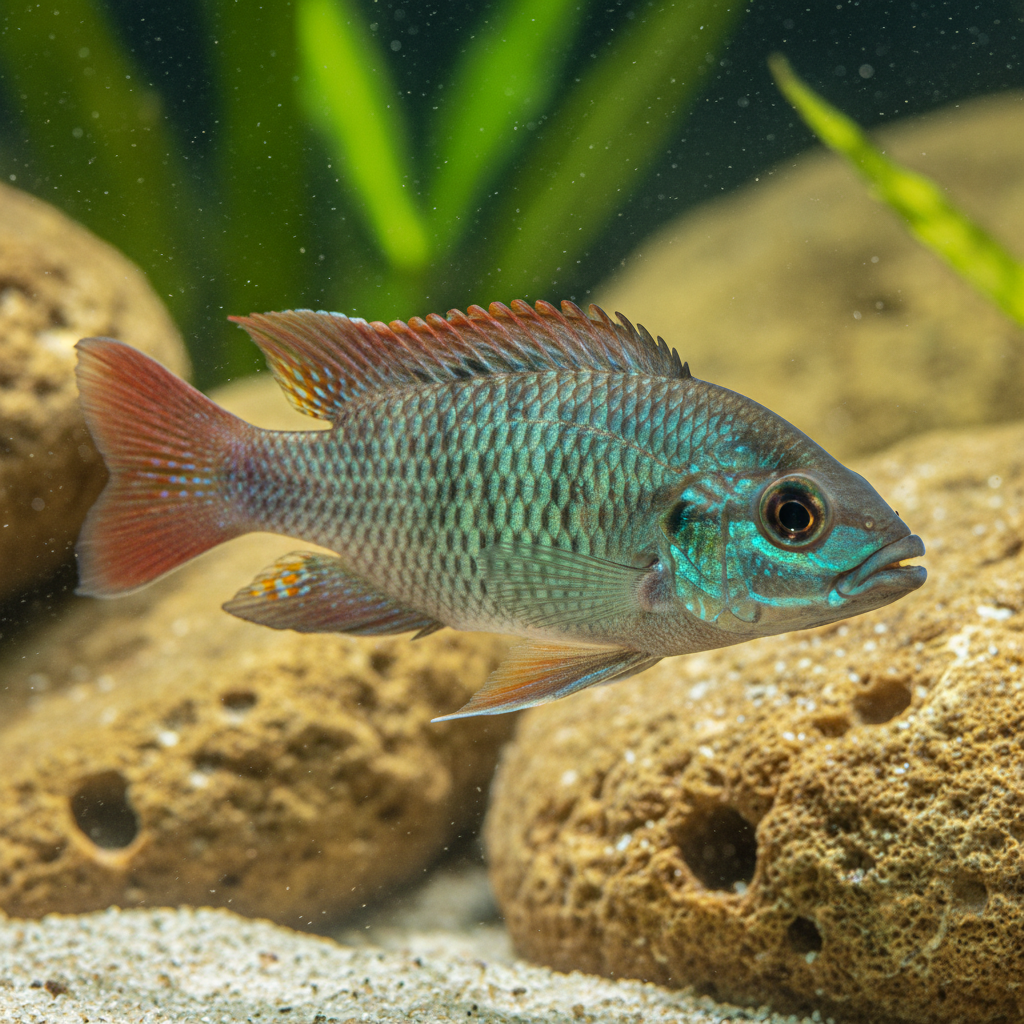 The Redfin Kadango, while generally hardy, can be susceptible to common aquarium ailments. Cichlids, including the Redfin Kadango, are prone to ich (Ichthyophthirius multifiliis) and stress-related disorders, particularly if the water quality deteriorates. Regular water testing, maintenance, and swift action in case of outbreaks can help prevent these diseases.