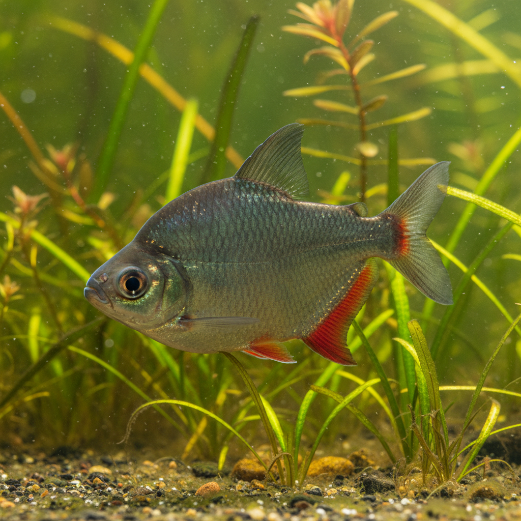 The Redhook Myleus, scientifically known as Myloplus rubripinnis, stands out as a breathtaking freshwater fish captivating aquarium enthusiasts worldwide. With its striking red or orange fins contrasting vividly against a silver body, this species is not only a visual delight but also a fascinating addition to any aquarium. The Redhook Myleus is particularly recognized for its unique, laterally compressed shape and vibrant coloration, making it a sought-after specimen for aquarists looking to enhance their aquatic displays. This fish can grow up to 12 inches in length, thus becoming a centerpiece of larger community tanks where its dynamic presence can be fully appreciated.