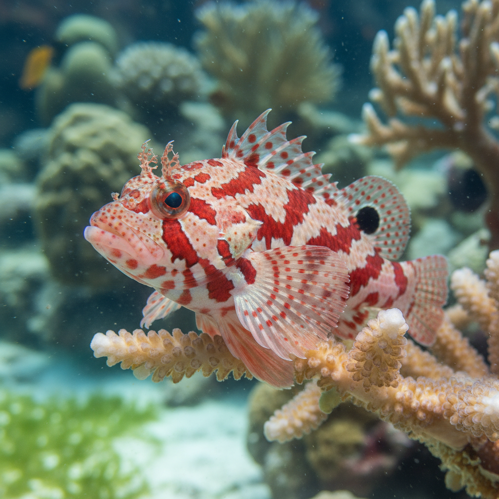 The Redspotted Hawkfish hails from the coral reefs and rocky outcrops of the Indo-Pacific region, with a distribution that includes areas from the Red Sea to the southwestern Pacific. It thrives in clear, warm waters, typically preferring depths between 10 to 30 meters, where it can utilize its unique adaptations to hunt for prey. The environmental context of its natural habitat is crucial for understanding its care requirements in aquaria; the fish is accustomed to stable water conditions that are rich in biodiversity. Additionally, these regions feature plenty of crevices and ledges, offering ample hiding spots that are essential for the fish's natural behavior.