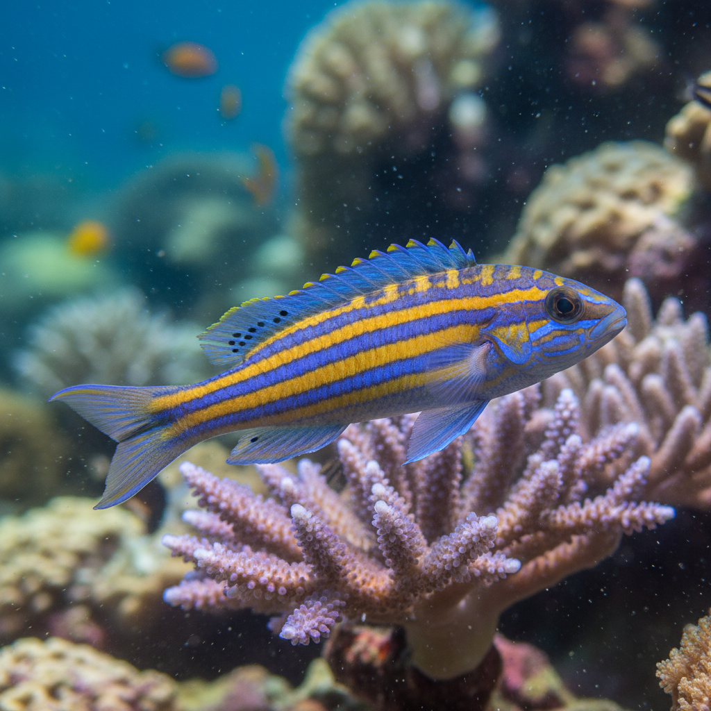 The Royal Pencil Wrasse (Pseudojuloides severnsi) is a stunning saltwater fish known for its unique appearance and behavior.