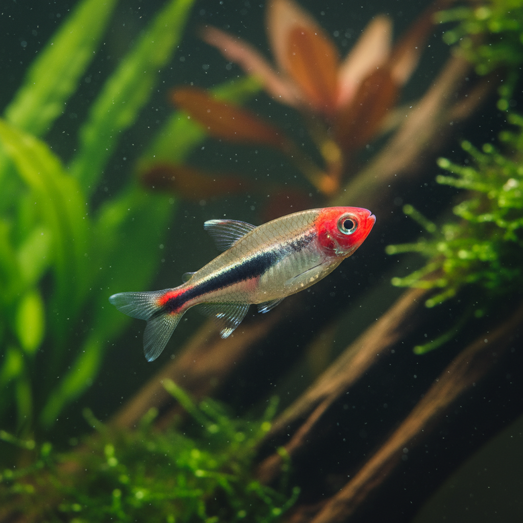 In terms of spatial behavior, Rummynose Tetras tend to occupy the mid to upper levels of the aquarium and often display more personality when they feel secure in their surroundings. Providing ample swimming space and hiding spots will ensure they remain relaxed and showcase their natural behavior freely.