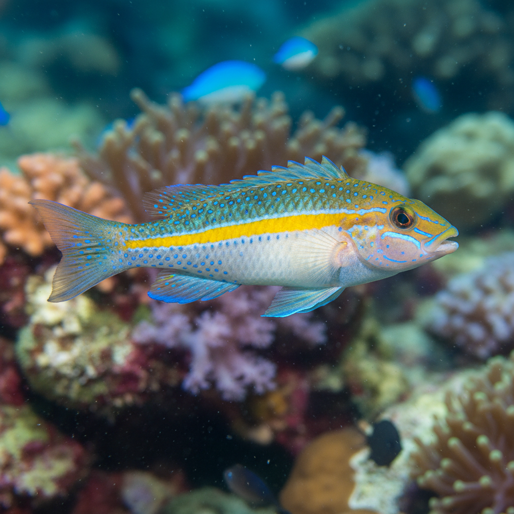 The Silver Belly Wrasse is native to the warm, tropical waters of the Indo-Pacific region, predominantly found in areas like the Coral Sea and the Great Barrier Reef. These fish inhabit shallow reefs and sandy substrates, where they can easily forage for their food. They typically prefer clear, warm waters rich in biodiversity, often lurking among coral formations and rock crevices, which provide essential shelter. The ecological role of this species is significant, as it contributes to the balance of its natural habitat by feeding on various invertebrates and plankton.