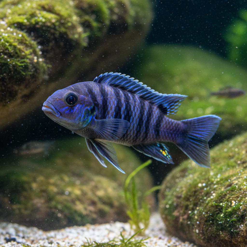 The Slender Blockhead Cichlid is indigenous to the shallow waters of the Congo River Basin in central Africa, where it thrives in rocky substrates and amidst dense vegetation. This region is characterized by soft, slightly acidic waters, often classified as blackwater, which influences the biotopic conditions these cichlids require. The natural habitat is typically composed of slow-moving streams and flooded forest areas, where leaf litter and detritus create a nutrient-rich environment ideal for the diverse microorganisms that constitute a key part of their diet.