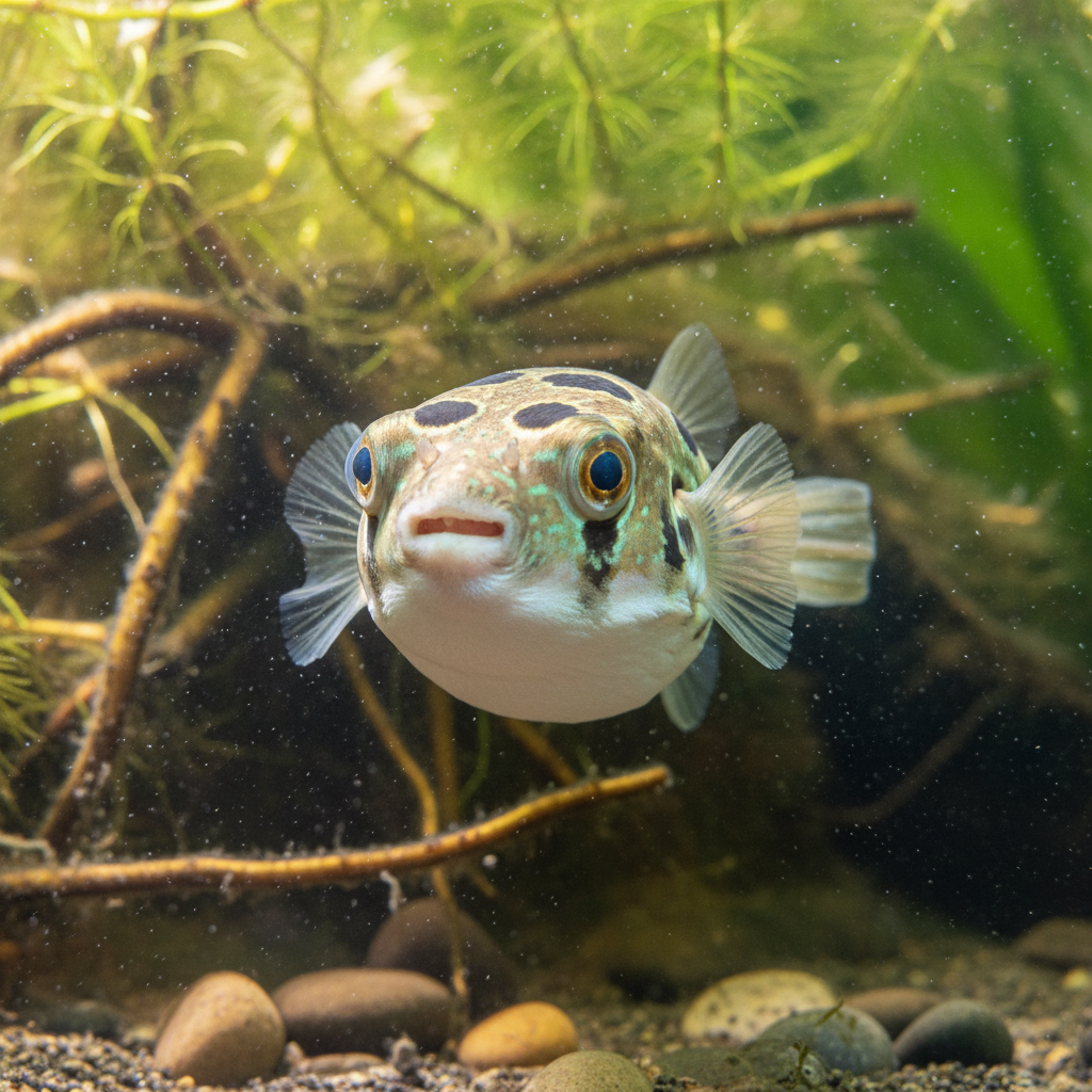 For tank setup, a minimum size of 20 gallons is recommended, allowing enough space for swimming and exploring. When designing the tank, opt for a substrate of fine sand or smooth gravel to mimic the natural riverbeds. Include plenty of hiding spots by adding driftwood, caves, and dense aquatic plants like Java moss or Amazon swords to provide both shelter and foraging opportunities. Lighting should be moderate, as South American Puffers prefer dimly lit environments akin to their natural blackwater habitats.